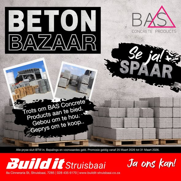 Visit Build it Struisbaai today and speak to one of our experts for the best advice and tips to kickstart your DIY projects! Whether you’re renovating, building from scratch, or just tackling some DIY projects, we’ve got you covered! Special Offers Valid: 24 February – 7 March 2026. Ts and Cs apply.